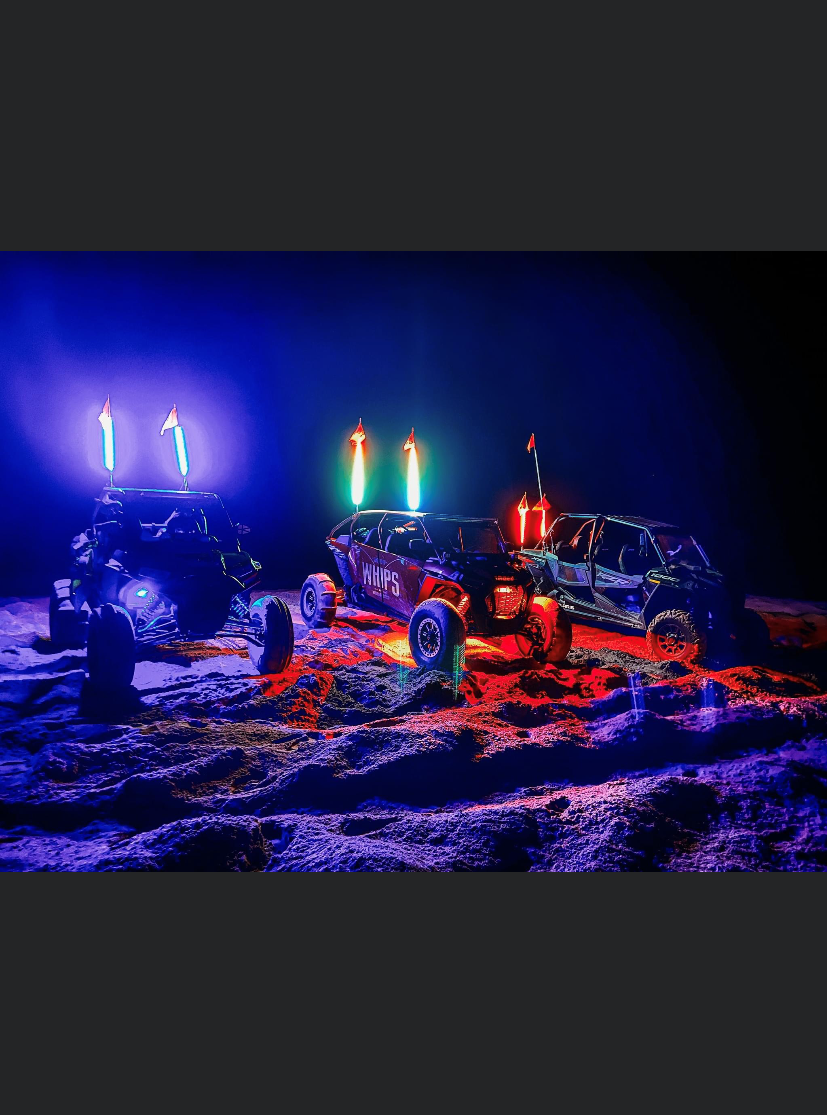 The "Dream Whip" gives you 350+ different functions using more than 20 colors, so you can customize your lighting experience and choose LED displays as desired. Choose your base color, size, and harness style.