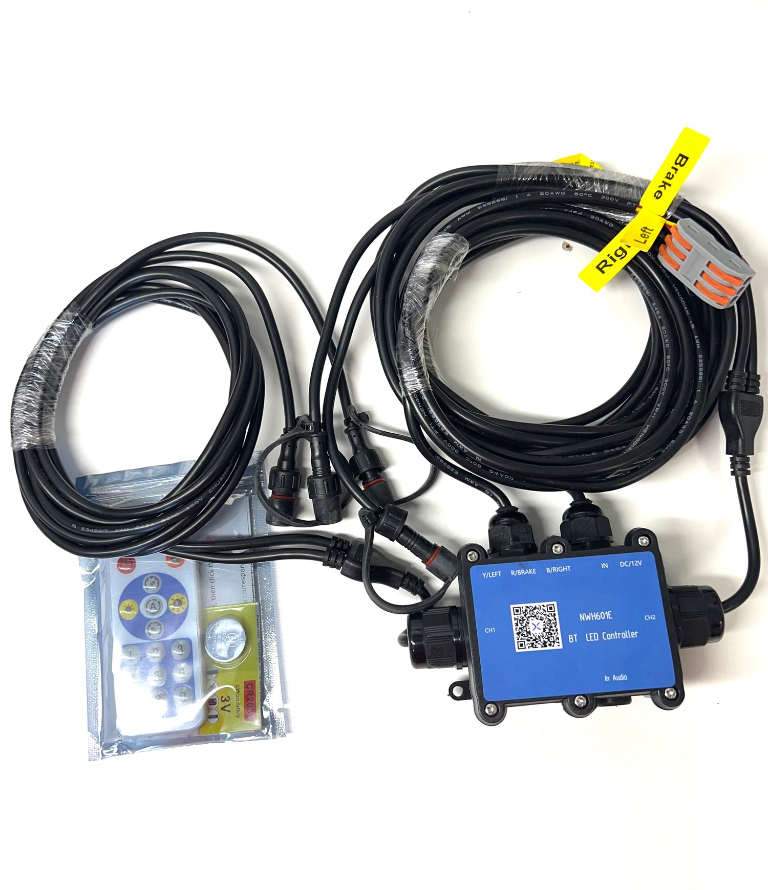 Our newest Dream harness upgrade option allows brake and turn function in your whips, as well as music sync and over 300 functions. Harness includes four connections, allowing you to sync whips with other lighting. Harness can be purchased for additonal charge. Contact us directly for more details!