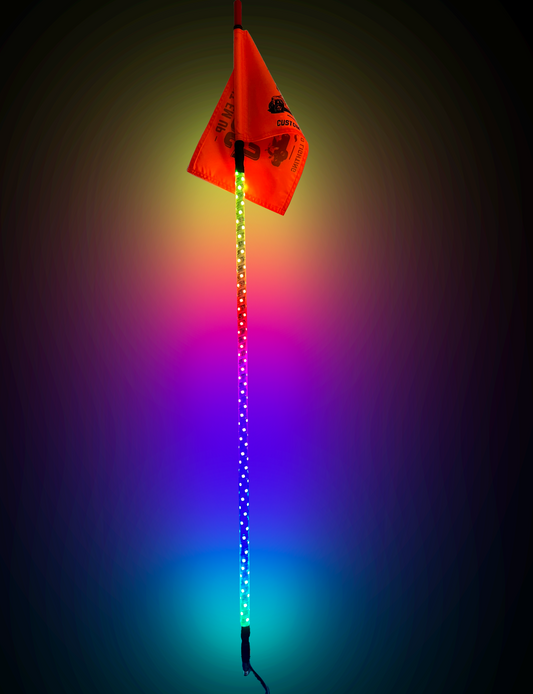 Our newest Dream harness upgrade option allows brake and turn function in your whips, as well as music sync and over 300 functions. Harness includes four connections, allowing you to sync whips with other lighting. Harness can be purchased for additonal charge. Contact us directly for more details!